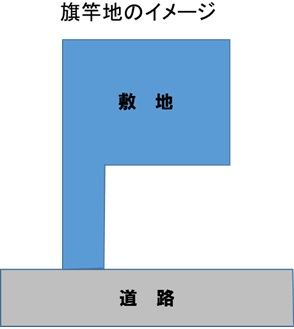 「旗竿地」とは、道路(公道)に接する出入口部分が細い通路上の敷地になっており、その奥に家の敷地がある形状の土地のことです。竿のついた旗のような形状をしていることからそう呼ばれています。